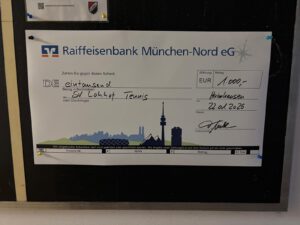 Die Tennisabteilung des SV Lohhof bedankt sich herzlich bei der Raiffeisenbank München-Nord eG für die großzügige Spende in Höhe von 1000€, die uns am 22.01.2026 zugutegekommen ist.